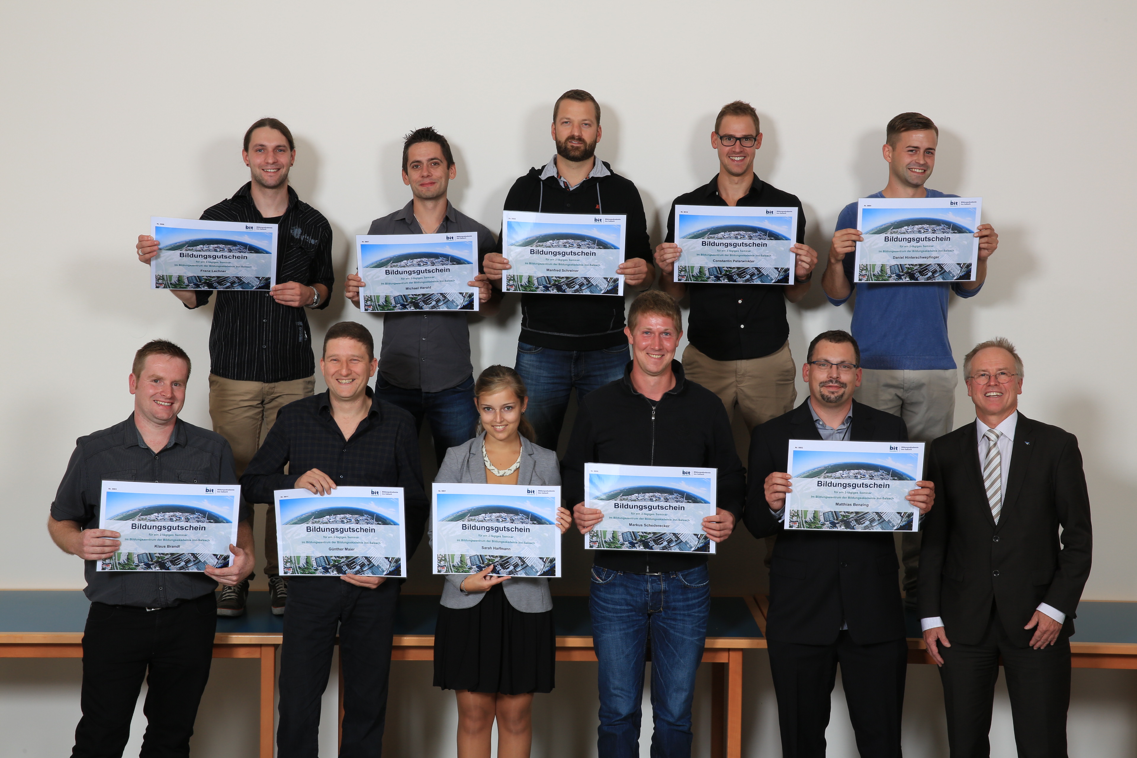 Als Lehrgangsbeste wurden zwölf Absolventen beglückwünscht: Chemietechnikerin Sarah Harfmann, Informatiktechniker Markus Benzing, Technischer Betriebswirt Klaus Brandl, die beiden Chemikanten Daniel Hinterschwepfinger und Manfred Schreiner, Produktionsfachkraft Chemie Markus Schederecker, Maschinen- und Anlagenführer Michael Herold, die beiden Industriemeister Chemie Franz Lechner und Robert Aicher, Industriemeister Metall Christian Schmid, Industriemeister Elektrotechnik Constantin Peterwinkler und Labortechniker Chemie Günther Maier. Für ihre Leistung erhalten sie einen Bildungsgutschein der Bildungsakademie. „Mit dem neu erworbenen Fachwissen empfehlen sich die Lehrgangsteilnehmer als wertvolle Mitarbeiter. Denn nur durch hohe fachliche Kompetenz können wir im internationalen Wettbewerb bestehen“, schildert Langhammer. Die Bildungsakademie setze sich deshalb für die Aus- und Weiterbildung der Fachkräfte aus der Bildungsregion im östlichen Oberbayern ein.
