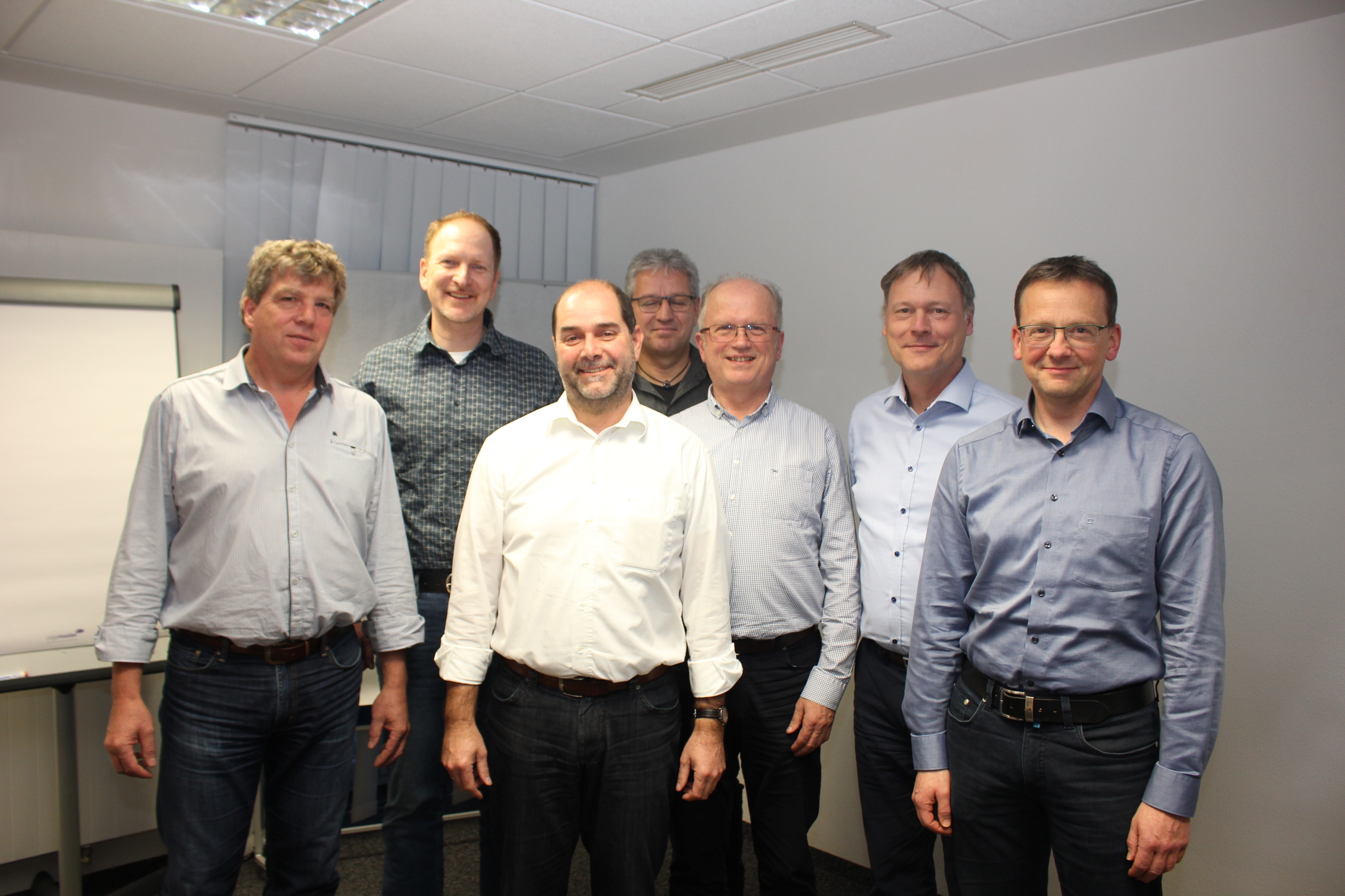 Die Teilnehmer des Netzwerks „Gendorf plus“ (vlnr): Robert Bergmeier (Clariant Moosburg), Stephan Carda (UPM Schongau), Peter Geyer (ISG), Otto Kronwitter (Global Amines), Albert Stoiber (Clariant Gendorf), Jürgen Tröster (ISG) und Olaf Gerlatzek (BYK Chemie Moosburg). Nicht im Bild: Stefan Authier (ISG) und Robert Lackner (OMV).