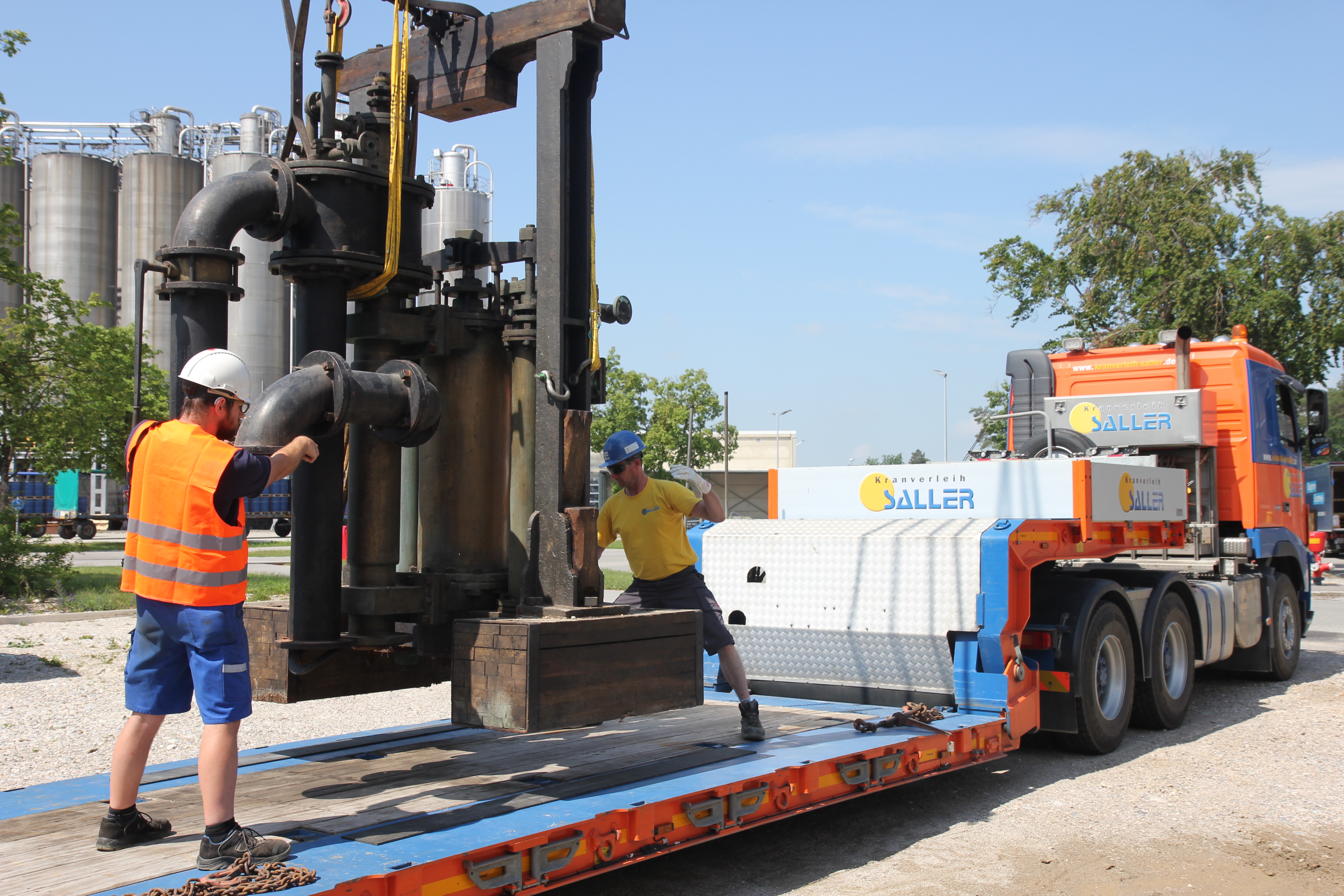 Ein Stück Industriegeschichte geht auf Reisen: Binnen knapp drei Stunden wurde die tonnenschwere Anlage aus dem alten Pumpenhaus im Chemiepark GENDORF entfernt und verladen.
